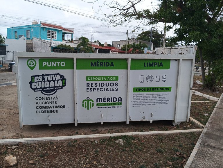 Han puesto cerca del parque a mi casa un contenedor de basura especial, como chatarra o objetos electrónicos o eléctricos que no se pueden tirar en la basura normal. Es una buena estrategia para tener más limpias las calles.