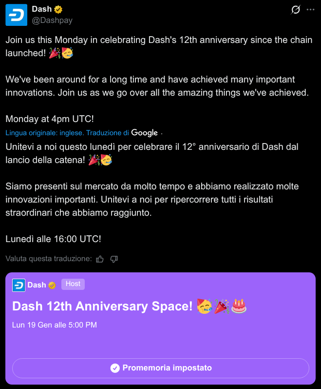 Post: https://x.com/Dashpay/status/2012526394077491253?s=20