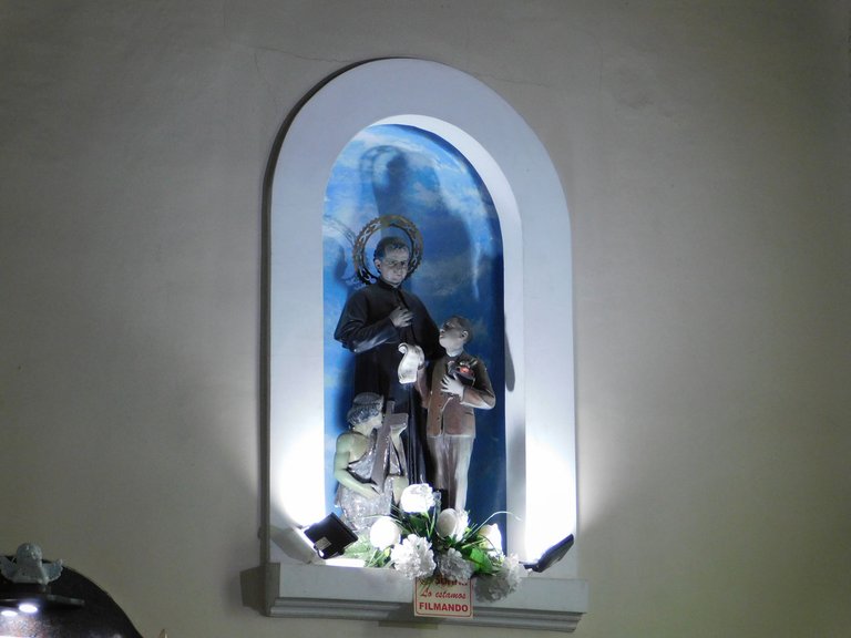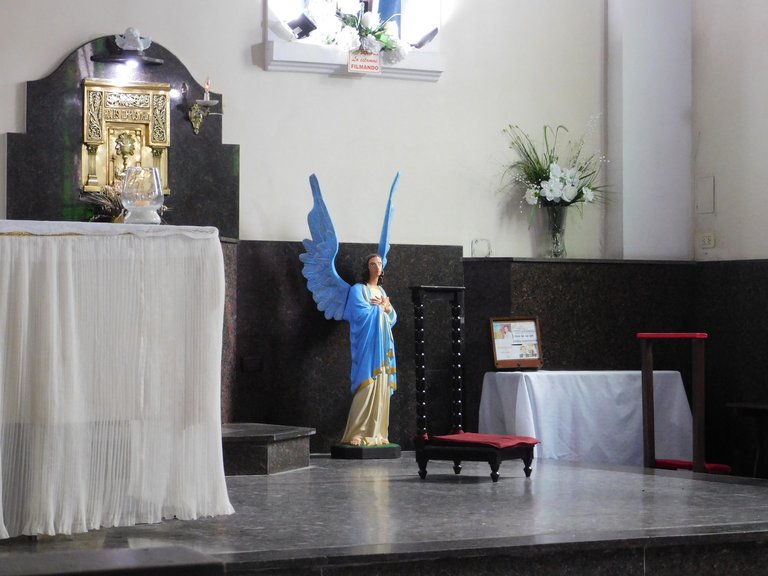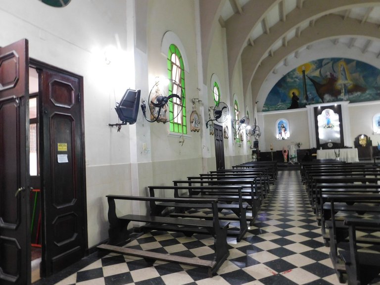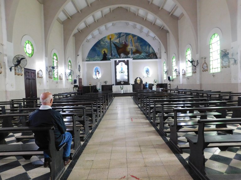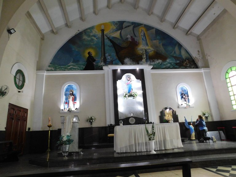 Contrary to what one might perceive from the exterior facade, which suggests that it is a small ¨parish¨: the hall is spacious with plenty of natural light, the atmosphere is very pleasant, it must be noted that the main altar is really simple, but I think that is where the beauty lies; In the center, you can see the image of its"saint":patron, accompanied by two images located on each side. At the top, you can see a large "mural":created in 1970, inspired by the dreams of "Don"-"Bosco":