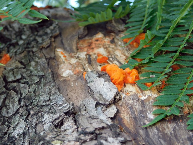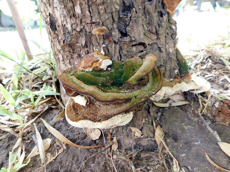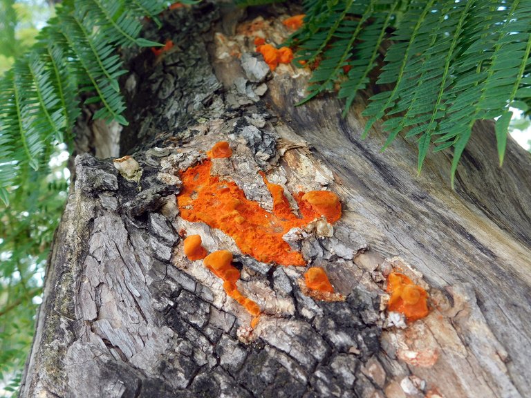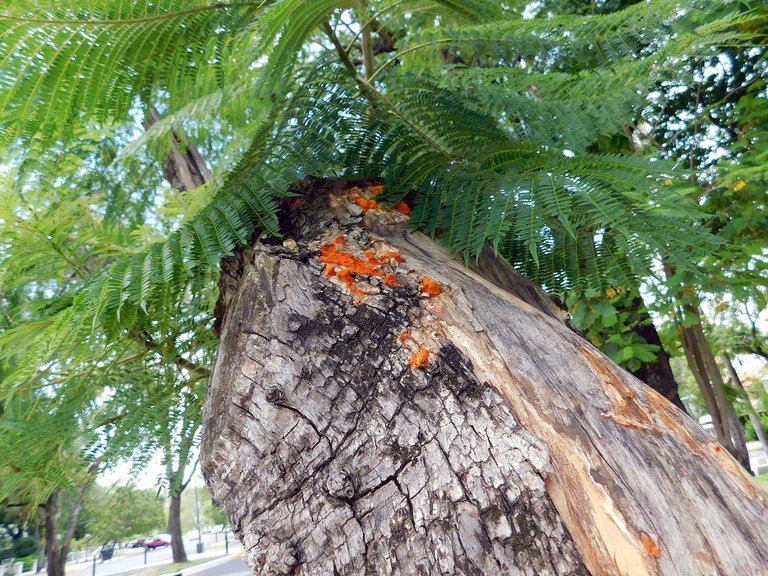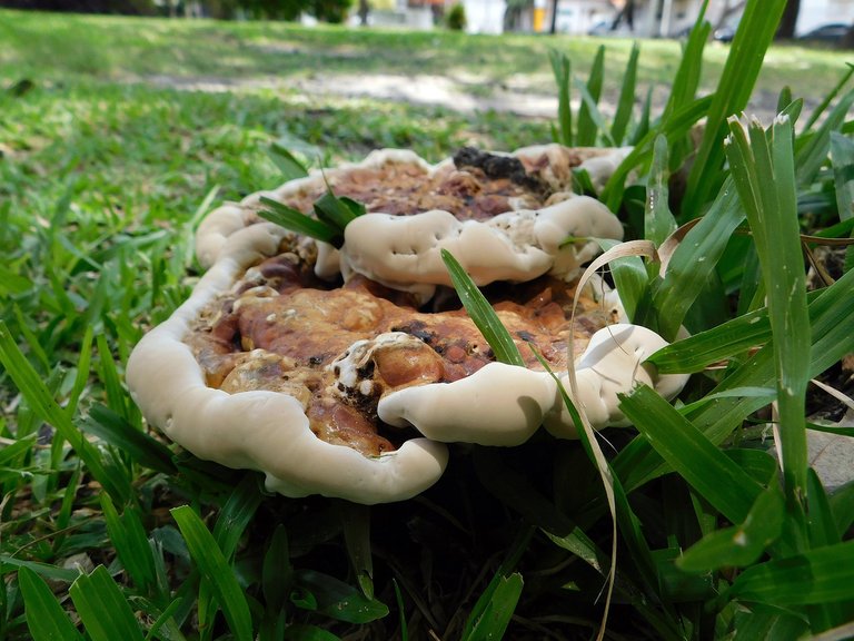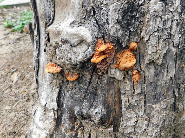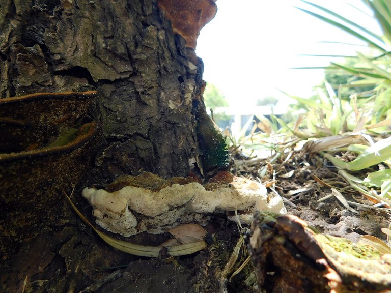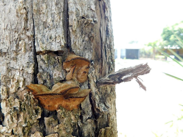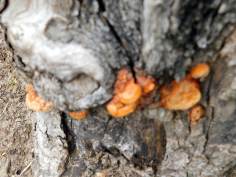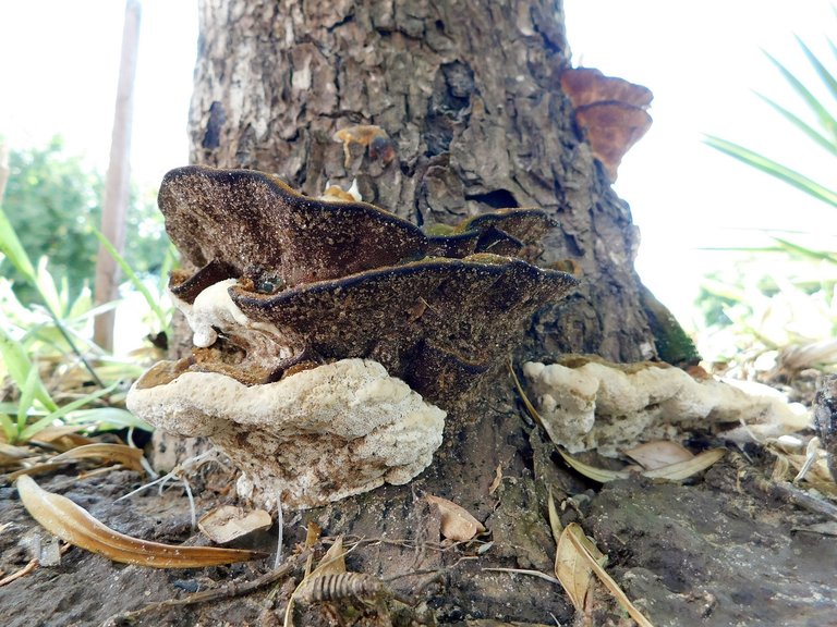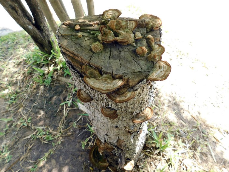 The truth is that the city center is always surprising us, and this time the "mushrooms" have been the stars; After finishing our photo shoot, it was time to go home. This time, we decided to take a bus that goes into the neighborhood and drops us off very close to our house. It was there that I came across these remarkable "fungi" :  As you can see, they've taken over a tree trunk and are coexisting with "fungi" of other species.