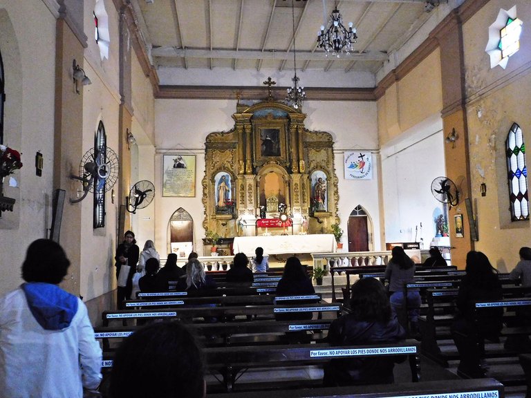 The interior of the ¨parroquia¨: , is simple and very welcoming, which is why it is so popular with the people who visit it daily; the walls of the main hall are made of brick, and it has undergone several restorations to keep it in good condition. In the center of the room, you can see a beautiful altar made of wood, where lovely celestial images are displayed.
