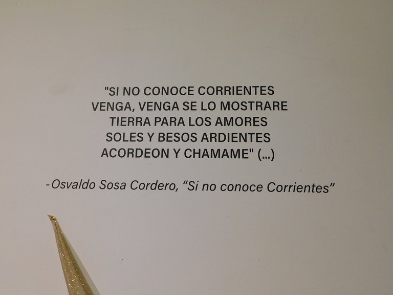 ¨Sosa¨-¨Cordero¨: is an admired and beloved person in the artistic environment, composer of many of the lyrics of our music, he was the one who gave lyrics to one of the most representative songs of our carnival. The exhibition held at the "Senate": was titled "Ché"-"Corrientes": and featured period instruments, portraits of the composer, and representative images of our popular festival.