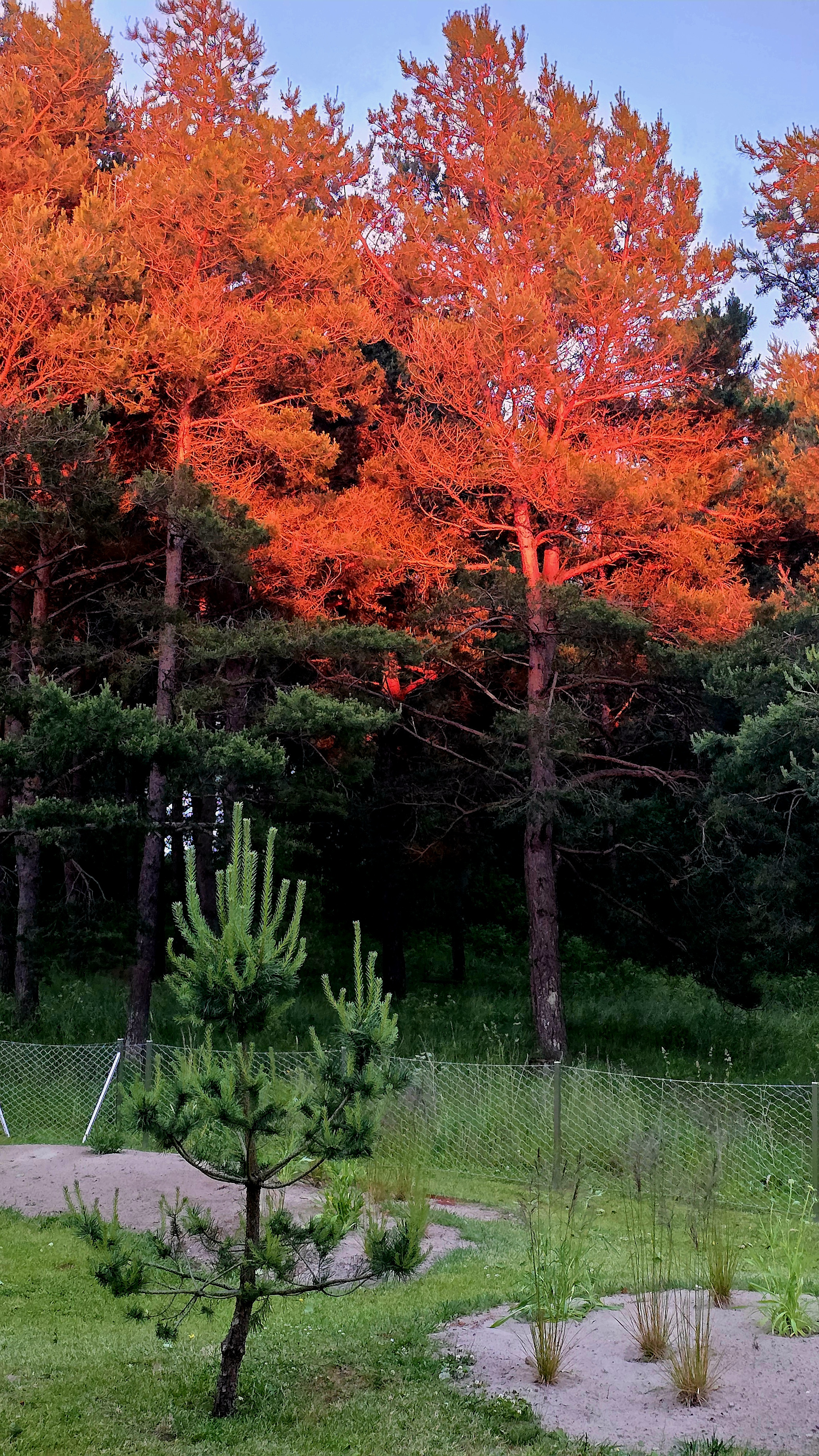 RED Red sunset Sun turned Green Pine trees into RED.