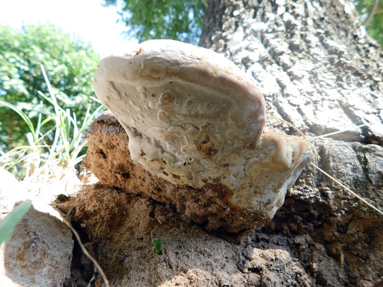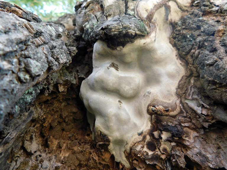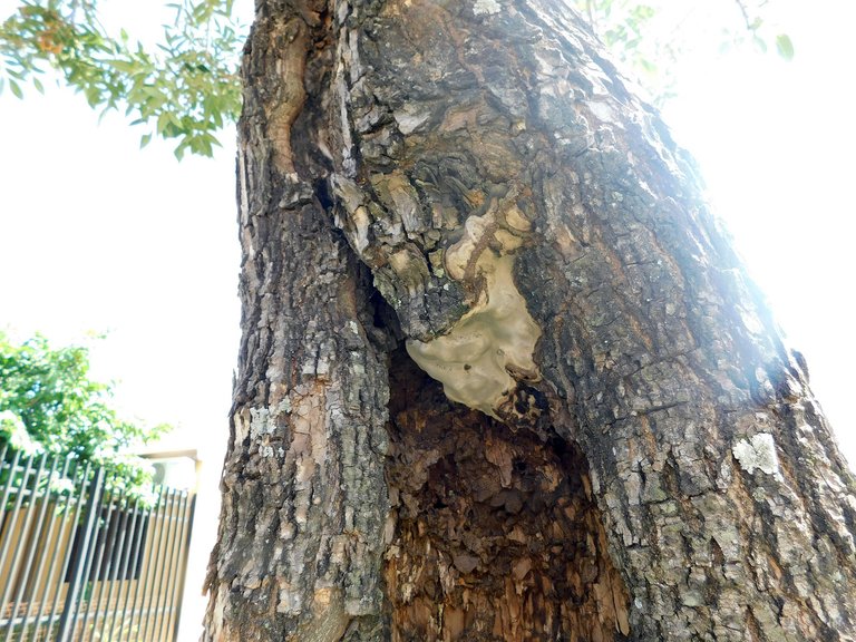 Another great coincidence that occurred this week was that the three specimens we found have hard bark, and curiously, they are the type of fungi that grow on the bark of this "tree" : Honestly, I don't know how we managed to find this striking "specimen" : as it was inside a fissure in the trunk; Although in the last month we found it several times, they are not one of those "mushrooms" that I find very often
