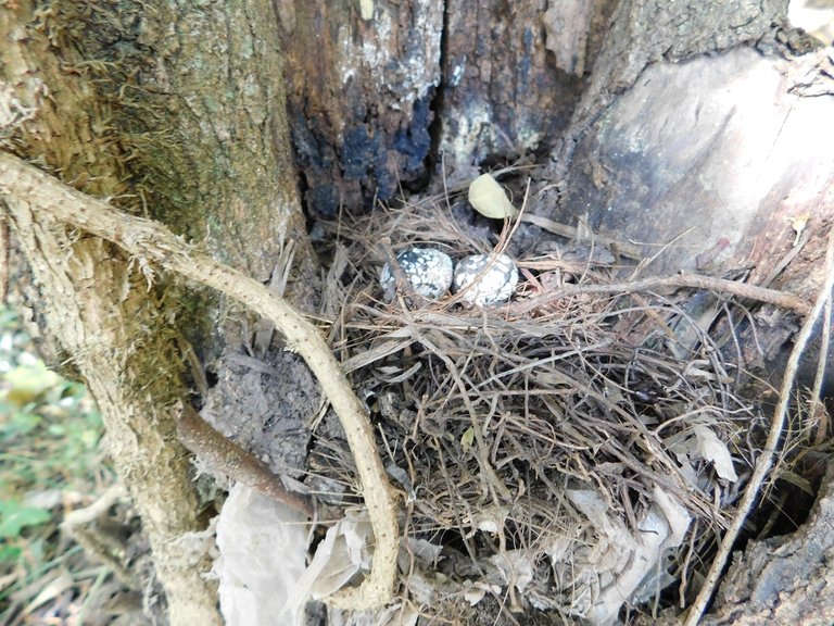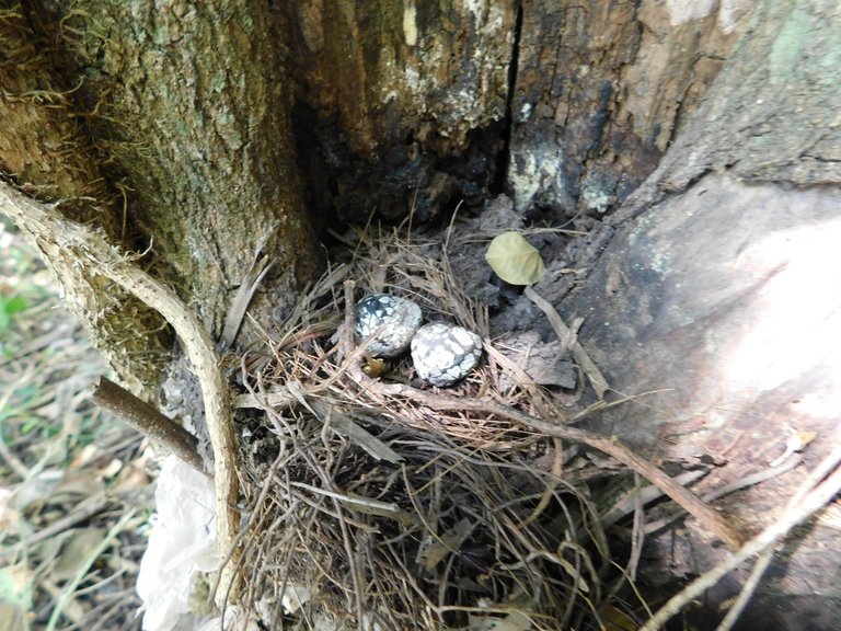 When you walk around observing everything with the desire to learn, everything you see sparks your curiosity. That's how you find interesting things worth investigating, like this bird's nest that was high up in the tree, and the other smaller one we discovered on the trunk of another tree. Judging by its shape and the small eggs, I would say it's a hummingbird's nest