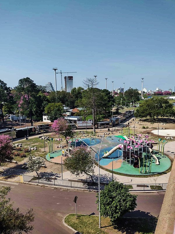 Whenever we visit this square, my grandmother takes her "phone"-"mobile": to take pictures of the park from above, and as you can see, it's a beautiful way to observe this Beautiful and colorful space. It's been wonderful visiting this square; we always have a great time there.